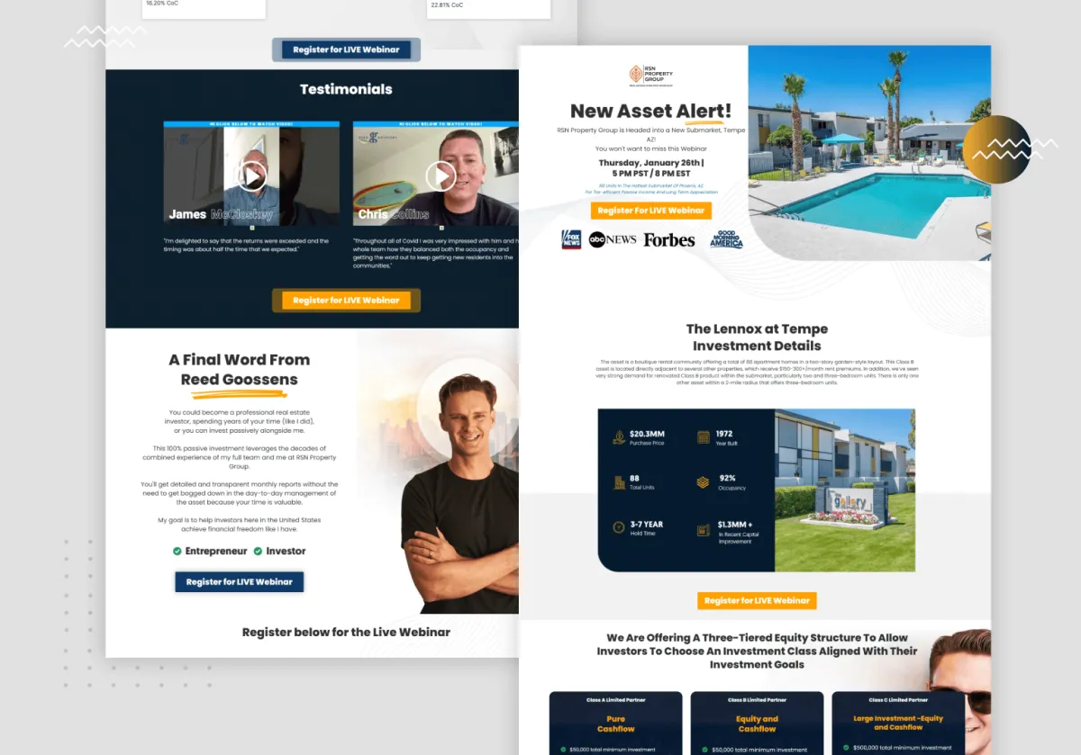 RSN Property Group and his marketing team saw over 500% increase in traffic engagement and a whooping 300% increase in sign up as the redesigned funnel resonated with their audience which delivered exceptional results.